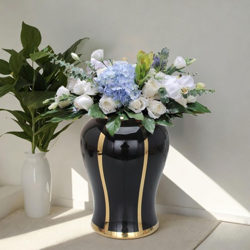 [Kreatywny projekt]: dekoracyjny wazon ceramiczny z modnymi ustami, czyste i doskonałe wykonanie. Słoik imbiru ma gładkie usta i zdejmowaną pokrywkę, idealną do przechowywania świeżych kwiatów.