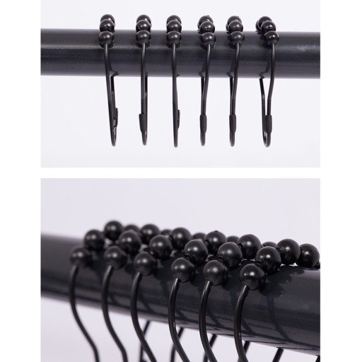 Haczyki są wystarczająco mocne, aby utrzymać ciężką zasłonę. Są szczelnie zamknięte, co uniemożliwia zsunięcie się kurtyny z pierścieni. Możesz cieszyć się ulubionymi zasłonami z ulubionymi haczykami i może być używany do większości metalowych prętów w łazience.