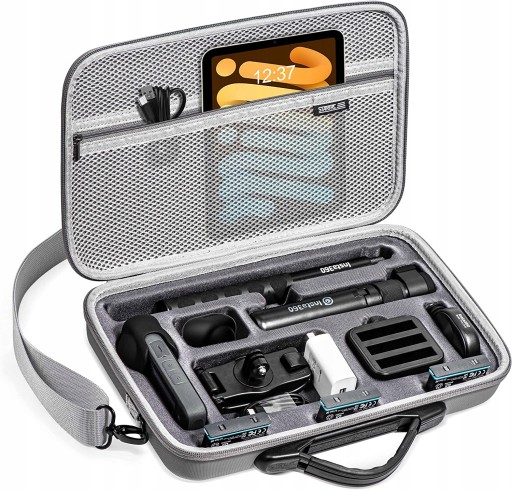 【Duża pojemność】 Jest w stanie pomieścić kamerę 1 * Insta360 X3, 1 * poziomo-pionową ramkę ochronną, 3 * baterie, 2 * gumową osłonę obiektywu, 2 * mocowanie adaptera szybkiego zwalniania , 1 * płaska podstawa samoprzylepna, 1 * Pręt przedłużający, 1 * wielofunkcyjna obudowa baterii, kable, śruba blokująca, karty SD i wiele innych akcesoriów do aparatu.