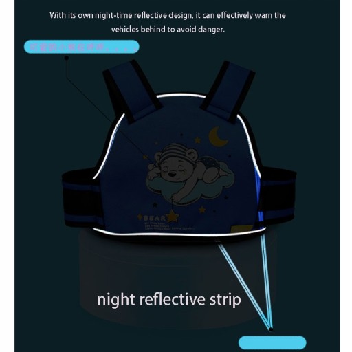 4) Odblaskowy pasek z tyłu pasa bezpieczeństwa pomaga Tobie i Twojemu dziecku zachować bezpieczeństwo w ciemności.