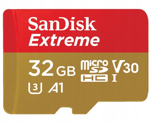 W komplecie z Sandisk Extreme microSDXC 32 GB A1 C10 V30 UHS-I U3 znajduje się adapter SD, dzięki któremu szybko i wygodnie przeniesiesz zdjęcia lub filmy do laptopa.