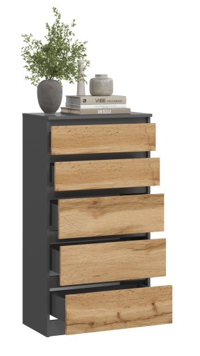 КОМОД COCO С 5 ЯЩИКАМИ ГРАФИТ, ДУБ ВОТАН