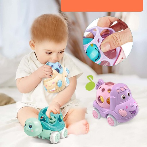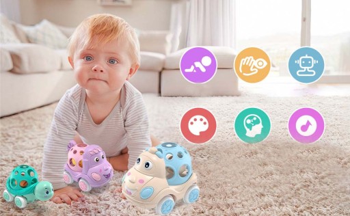 Górna część każdego samochodzika to miękka i elastyczna grzechotka z otworami na palce ułatwiającymi chwytanie dzieciom. Niemowlęta i małe dzieci uwielbiają bawić się tymi samochodami z grzechotką.