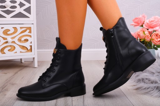 Damskie botki, glany w kolorze czarnym. ❤ Zapinane na suwak oraz wyposażone w sznurówki. Posiadają ocieplenie- idealne na chłodną porę. Płaska, stabilna podeszwa zapewnia komfort użytkowania