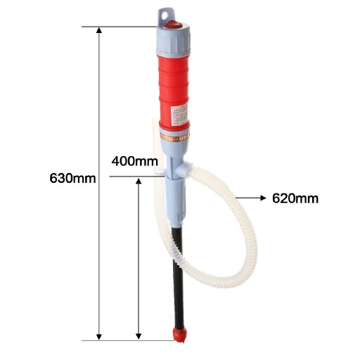 - Łatwa obsługa - wystarczy zanurzyć jeden koniec pompki w płynie, wężyk wylotowy włożyć do pojemnika i nacisnąć przycisk dostępny w górnej części pompki