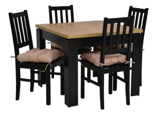 Rozkładany, kwadratowy stół 90x90/120 + 4 x drewniane krzesła z poduszką.