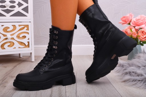 Damskie botki, glany sznurowane w kolorze czarnym. ❤ Stabilna podeszwa zapewnia komfort użytkowania. Klasyczny fason można wykorzystać do tworzenia nowych stylizacji.