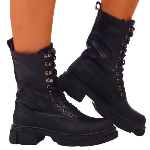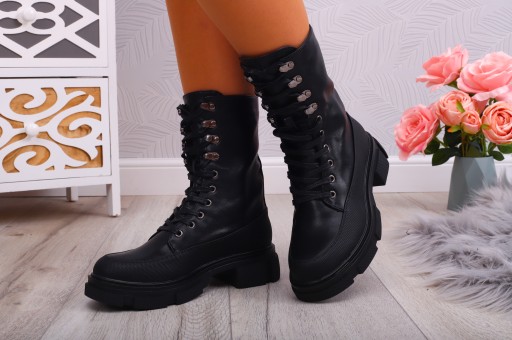 Damskie botki, glany sznurowane w kolorze czarnym. ❤ Stabilna podeszwa zapewnia komfort użytkowania. Klasyczny fason można wykorzystać do tworzenia nowych stylizacji.