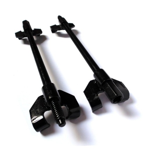 Dostosowane do wszystkich typów sprężyn w kolumnach McPhersona oraz sprężyn niezależnych. Ściągacze współpracują z grzechotką 1/2". Posiadają drobnozwojowy gwint, ułatwiający pracę pod obciążeniem sprężyny. Praca jest bezpieczna dzięki specjalnie wyprofilowanym, dwuramiennym uchwytom
