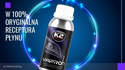 K2 Vapron to profesjonalny zestaw do regeneracji i zabezpieczenia zniszczonych lamp, popularnie nazywany „czajniczkiem do reflektorów” lub „magicznym czajniczkiem”. Doskonale nadaje się do odnawiania zniszczonych (zmatowiałych, pożółkłych) reflektorów, niezależnie od wieku samochodu i stopnia zniszczenia lamp.