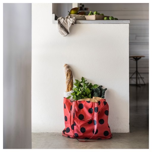 Ta składana torba na zakupy wykonana jest z poliestru z recyklingu, głównie butelek PET, aby zmniejszyć marnowanie zasobów i nadać plastikowi nowe życie. Idealna do noszenia w torebce i wielokrotnego używania.