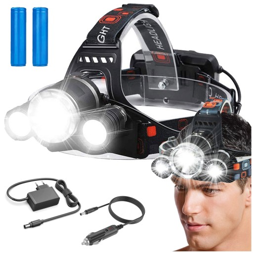 ⭐ MOCNA, WODOODPORNA LATARKA CZOŁOWA 3x LED CREE T6, IPX4