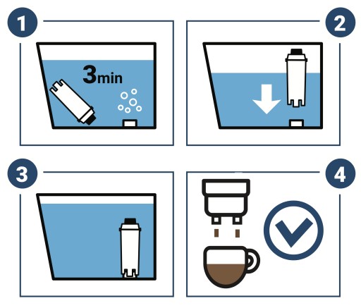 - Zamontuj filtr w zbiorniku na wodę zgodnie z instrukcją obsługi ekspresu.