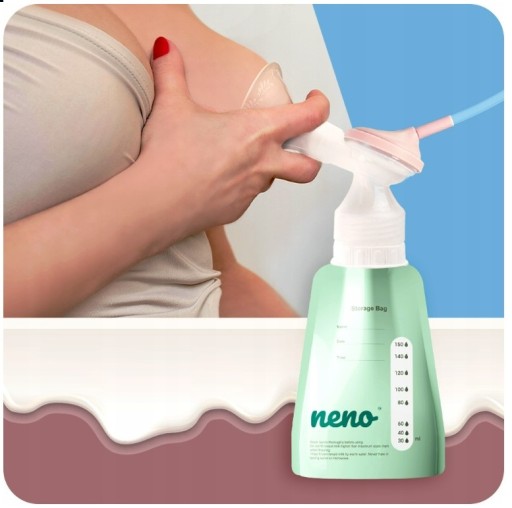 Woreczek Neno jest świetnym pomocnikiem w przechowywaniu pobranego z piersi pokarmu. Posiada on specjalne miejsce do zapisu daty odciągania mleka, wraz z godziną oraz imieniem Mamy lub jej Pociechy. Ponadto znajduje się na nim miarka, która ułatwi dokładny pomiar ilości mleka wlewanego do woreczka.