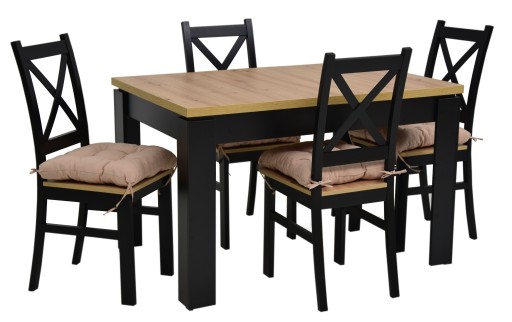 (1 x C4 czarny/ blat dąb artisan, 4 x krzyżak czarny/ siedzisko artisan)
