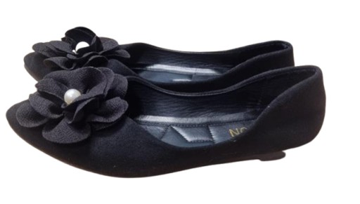 BALERINY DAMSKIE CZARNE OZDOBNY KWIAT