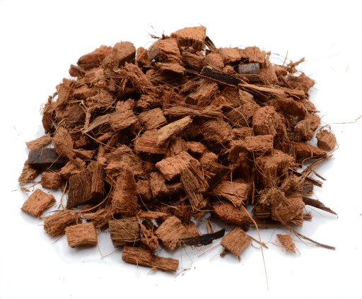 Zrębki łupin orzecha kokosowego z niewielką zawartością włókien kokosowych.