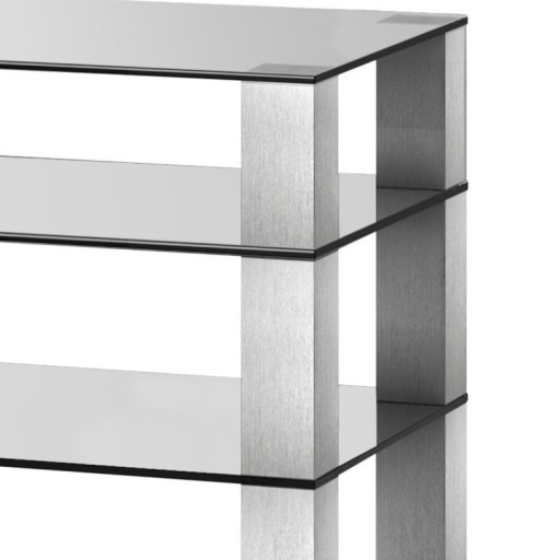 Sonorous RX5040 to stolik HI-FI z czterema pólkami, konstrukcja wykonana z wysokiej jakości aluminium o kształtach kwadratowych, półki wykonane z hartowanego szkła z polerowanymi krawędziami o szerokości 64 cm. Stolik wyposażony w kółka.