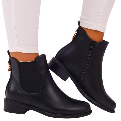 CZARNE BOTKI DAMSKIE SZTYBLETY PŁASKIE NA SUWAK Model Botki damskie ocieplane