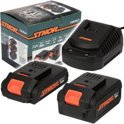 Ładowarka do baterii Sthor 20V - ładuje akumulator 2Ah w czasie 60 min lub 4Ah w 120 min.