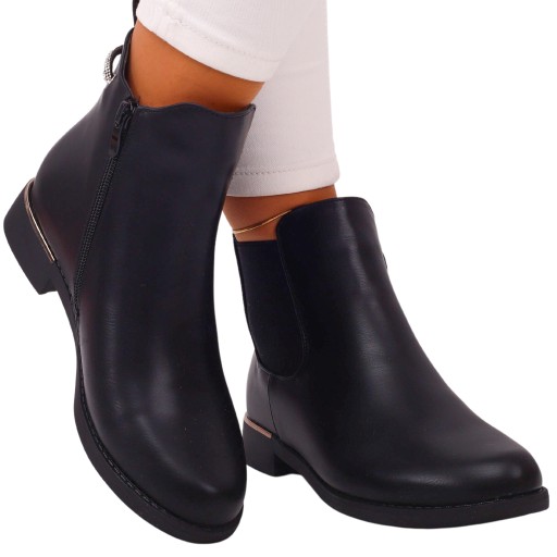 Damskie, wsuwane botki na obcasie w kolorze czarnym. W środku ocieplane miękkim futerkiem, co sprawia wygodne użytkowanie, idealne na zimę❗ Posiadają zapięcie na suwak, co umożliwia łatwe zakładanie. ❄ Stabilna, gruba podeszwa dobrze amortyzuje stopę oraz chroni przed zimnem.❄ Wykonane z dobrych jakościowo materiałów. Prosty fason sprawia, że pasują do wielu stylizacji.
