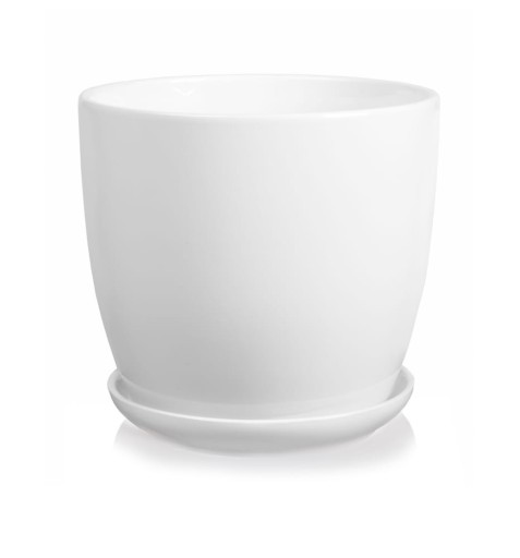 Łącząca w sobie prostotę i elegancję - ceramiczna doniczka biała z podstawką w zestawie