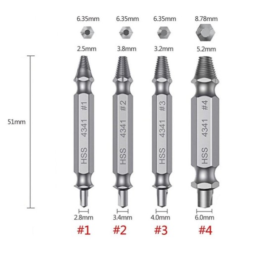 Zestaw bitów do wykręcania zerwanych śrub 4szt.