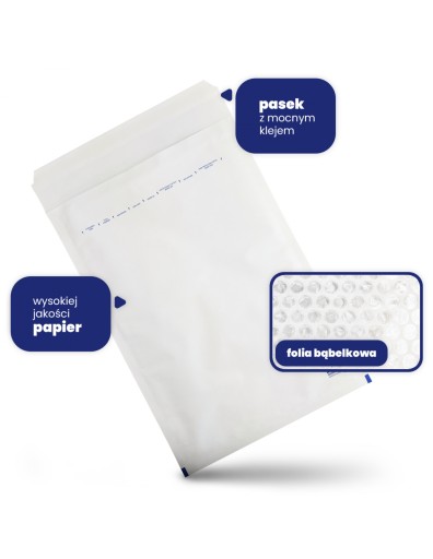 Wysokiej jakości koperty bąbelkowe wyprodukowane z niepowlekanego papieru z certyfikatem FSC oraz wytrzymałej folii bąbelkowej tworzącej wewnętrzną warstwę produktu. Dzięki odpowiednio przyciętej klapie i mocnemu klejowi solidnie zabezpieczają przesyłkę, bez obaw o przypadkowe otwarcie podczas transportu. Mała waga kopert nie dodaje obciążenia wysyłanym przedmiotom. Doskonale sprawdzą się do pakowania książek, biżuterii, artykułów dekoracyjnych, płyt, drobnej elektroniki i wszelkiego rodzaju niewielkich przedmiotów wymagających solidnego zabezpieczenia. Opakowanie 10szt. to doskonałe rozwiązanie nie tylko dla przedsiębiorstw, ale również dla klientów detalicznych.