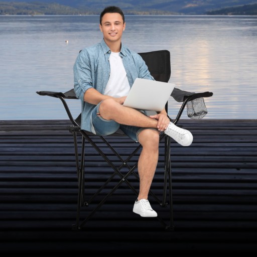 ✅WYJĄTKOWY KOMFORT: Składane krzesło wędkarskie zapewnia niezrównany komfort dzięki regulowanym podłokietnikom i specjalnemu miejscu na kubek. Ergonomiczna konstrukcja i stabilne siedzisko sprawiają, że możesz cieszyć się wygodą nawet przez długie godziny.