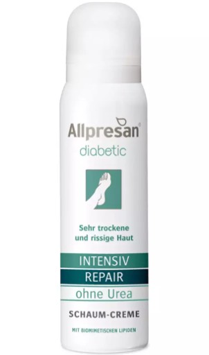 Krem w piance Allpresan Diabetic Intensive Repair bez mocznika jest oryginalnym produktem niemieckiej marki Premium w dziedzinie podologii i specjalistycznej pielęgnacji stóp.