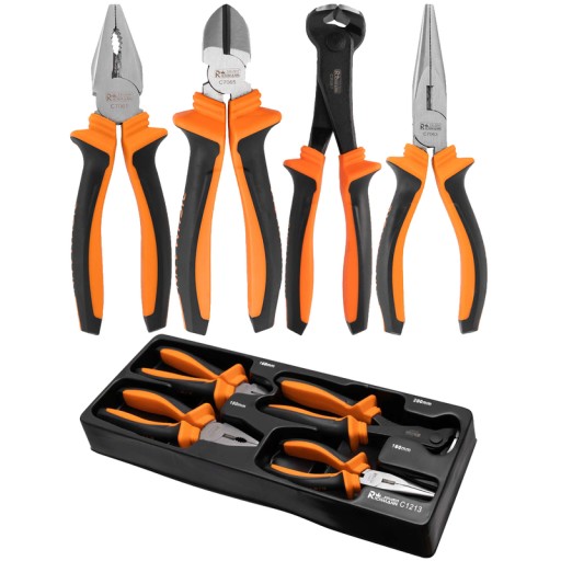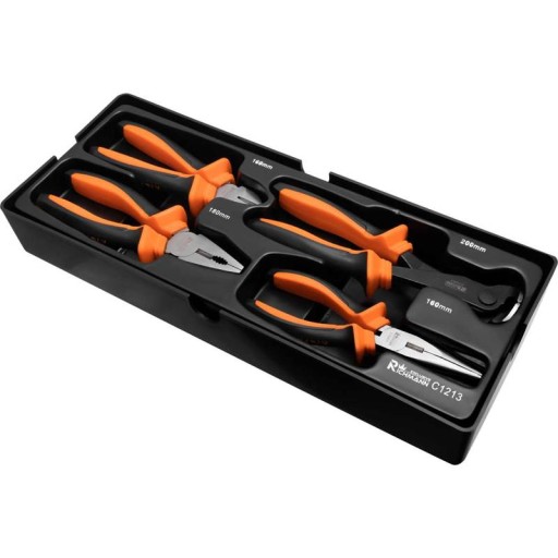 - Zestaw 4 sztuk szczypiec umieszczonych we wkładzie typu A do wózka warsztatowego.