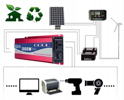 - Czysta sinusoida - doskonale współpracuje z urządzeniami wymagającymi ciągłego zasilania prądem identycznym jak w gniazdku. Są to m.in. laptopy, lodówki, telewizory oraz te najbardziej wrażliwe czyli panele solarne, piece oraz pompy CO