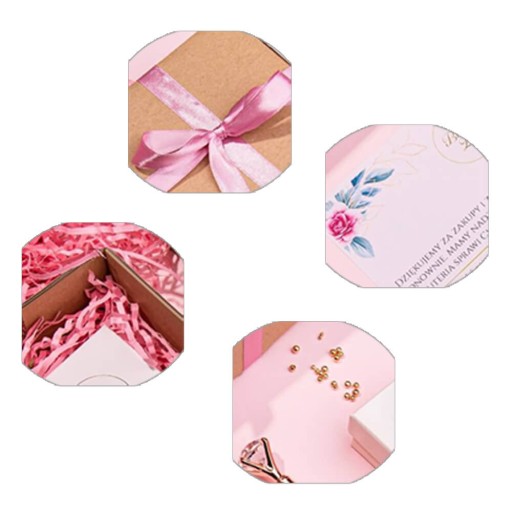 Wszystkie nasze przesyłki szykujemy tak, aby zaraz po odebraniu były gotowe do wręczenia. Paragonu nie wkładamy do pudełeczka, lecz obok, dzięki czemu biżuterię zaraz po wyjęciu z foliopaku kurierskiego możesz wręczyć bliskiej Ci osobie. Gwarantujemy, że sposób zapakowania na pewno Ci się spodoba.