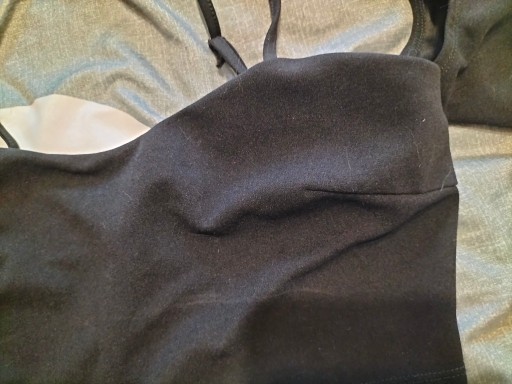 Krótka, czarna bluzeczka na regulowanych ramiączkach oraz z opadającymi rękawkami. Wyprofilowana w biuście.