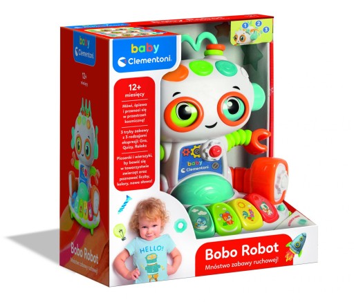 - Zupełnie nowy robot o zabawnym i słodkim wyrazie, z wieloma funkcjami i czynnościami. - Obracając dźwignię, zmieniamy nie tylko tryb gry, a także wyraz twarzy naszego BOBO. - Mówiąca zabawka edukacyjna z mnóstwem funkcji - Piosenki, melodie, zagadki, rymowanki i efekty dźwiękowe. - Robot porusza się w przestrzeni, przyciągając uwagę dzieci.