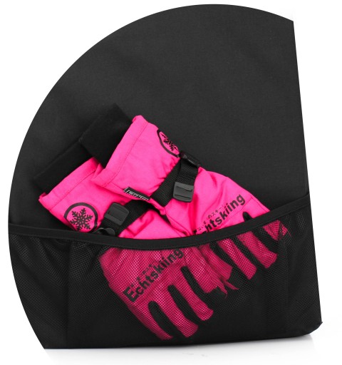 Z lewej strony torby znajduje się siatka zakończona mocną gumą, za którą możemy szybko schować podręczny sprzęt, np. możemy wsunąć tam rękawice, napój, czapkę, czy inny sprzęt podręczny.