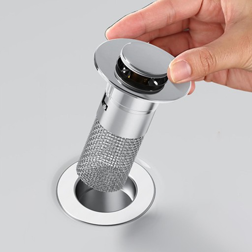 Сливной фильтр нажимного типа, встроенный в умывальник, сердечник из латуни.