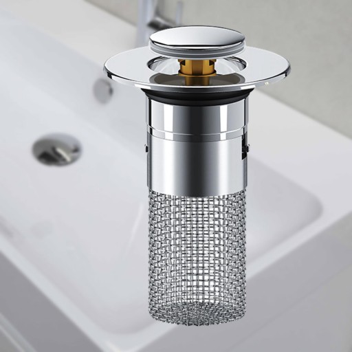 [Kosz z siatki]: nasz korek spustowy, zapobiegający blokowaniu i łatwy do czyszczenia, siatkowy kosz, skutecznie przechwytujący włosy oraz inne zanieczyszczenia i kosztowności nie jest łatwy do poślizgu.