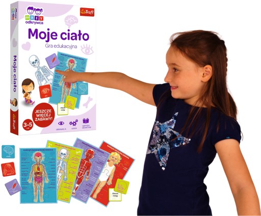 "Moje ciało" to prosta gra dla przedszkolaków, dzięki której dzieci zapoznają się z budową ludzkiego ciała. Podczas zabawy dzieci uczą się nazw nie tylko części ciała, ale także organów wewnętrznych, kości i mięśni. To świetnie dostosowane do wieku dziecka źródło wiedzy o ciele człowieka.