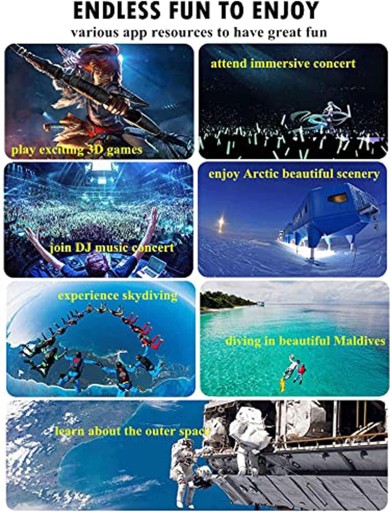 Nowy Uaktualnienie Bezprzewodowy Bluetooth VR 3D VR Wirtualna rzeczywisto Zestaw suchawkowy z BT 4.1 BLE Dual Protocol wsparcie wysokiej jakoci strumieniowanie audio niskie zuycie energii bezprzewodowe suchawki automatycznie cz si inteligentnie analizuj wibracje audio bezpatn odpowied rozczy tryb gry telefonu Tryb kina wiele trybów wokalnych do przeczania woli .. Imax Teatr Panoramiczny dwik surround 157 119mm mniejszy ni mylisz kompaktowy i skadany 55 mm duy obiektyw VR okulary nadaje si do duych ekranów telefonów komórkowych niezaleny napd karta dwiku 50mm dua jednostka suchawki membrany dokadnie przywróci pozycj dwikow i ruch Tor moesz atwo zamieni smartfona w prywatny scen filmow 3D IMAX w peni zanurz si w wirtualnej rzeczywistoci w kadej chwili moesz cieszy si szokujcym efektem 3D .. Pasuje dla osób we wszystkich grupach wiekowych FOV 110 stopni Duy kt widzenia Ochronnie Ochronna Obiektyw Optyczny Projektowanie humanizacji atwy do regulacji ramy gowicy oddechu i ustawiania ostroci kompatybilny z okularów. Myopia Ludzie w odlegoci 400 stopni moe cieszy si go swobodnie bez okularów moesz oglda te okulary VR z okularów. Idealny pomys na prezent dla dzieci syna córka mczyni kobiety matka ojciec babcia dziadek itp .. Szeroko kompatybilno VR jest kompatybilny z inteligentnymi telefonami niezalenie od tego czy jest to system Android lub IOS niezalenie od tego czy jest to telefon duy ekran lub may ekran 466.3inch. Gogle wirtualnej rzeczywistoci s dobrze kompatybilne z iPhone 6 78 XR 1112. Telefony z Androidem takie jak Samsung S8 S9 S10 S20 Google Pixel Telefon Telefony LG Motorola Huawei Android itp. Zalecane uywanie bez obudowy telefonu. Uwaga 1 Kod QR na VR jest podrcznik produktu. Kady telefon komórkowy moe korzysta z rónych skanowania aplikacji czasami kod QR nie moe zosta zeskanowany ale nie martw si kady VR ma podrcznik papierowy. 2 Nie dotyczy telefonów komórkowych powyej 62 cala 3 Nie jest kompatybilny dla Nitendo PS4 PC i TV