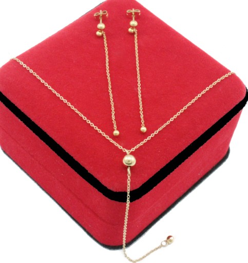 KOMPLET ZŁOTY KULKI KRAWATKA STAL CHIRURGICZNA