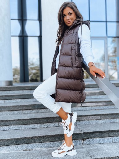 DŁUGA PIKOWANA KAMIZELKA DAMSKA Z KAPTUREM