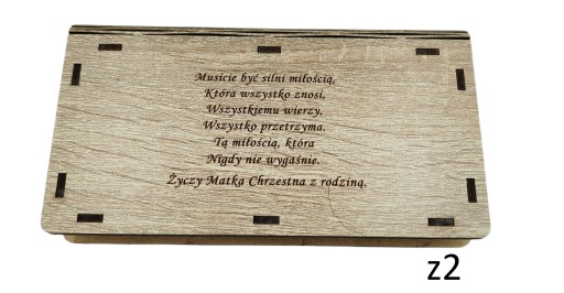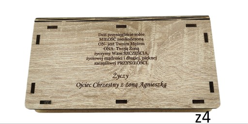 Nasza drewniana koperta na pieniądze z pewnością mocno ucieszy i będzie ciekawą formą pamiątki. Do środka, włóż banknoty, a wydrukowane życzenia wewnątrz koperty zastąpią klasyczną papierową kopertę.