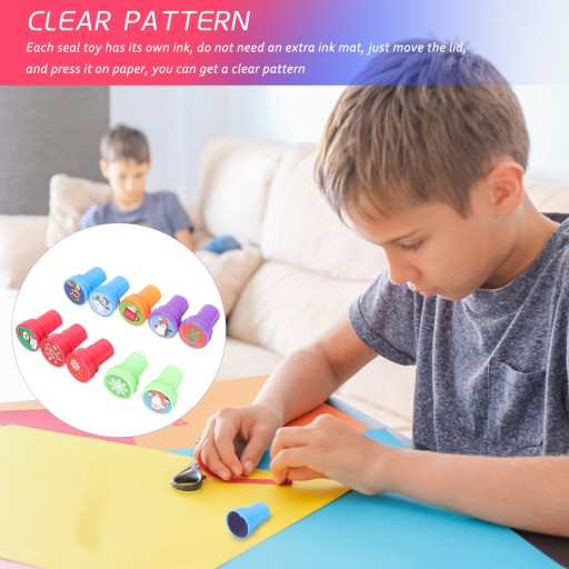 Każda zabawka z pieczęcią ma swój własny atrament, nie potrzebuje dodatkowej maty z tuszem, wystarczy przesunąć pokrywę i nacisnąć ją na papierze, aby uzyskać wyraźny wzór.