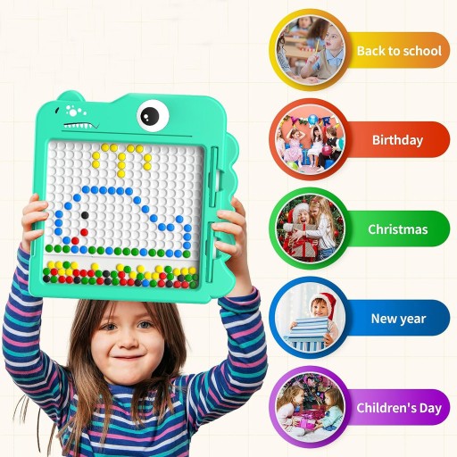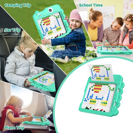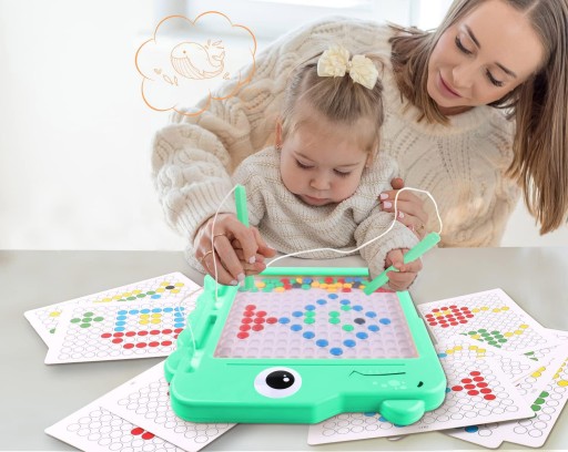 - ✅ ZABAWA NA DŁUGIE MIESIĄCE - tablica wyposażona jest w 80 kolorowych koralików magnetycznych, 2 magnetyczne długopisy oraz specjalne karty pokazujące 20 różnorodnych wzorów do ułożenia.
