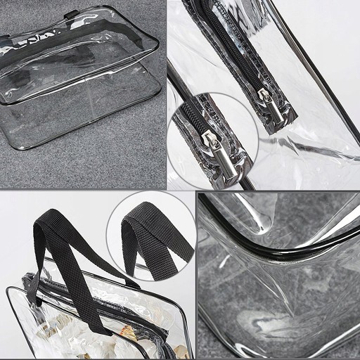 Wykonana z przezroczystego materiału PVC, bez BPA, duża grubość sprawia, że torba jest trwalsza i łatwa do czyszczenia, wodoodporna i wielokrotnego użytku.