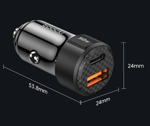 TooCKI МОЩНОЕ БЫСТРОЕ АВТОМОБИЛЬНОЕ ЗАРЯДНОЕ УСТРОЙСТВО USB USB-C TYPE-C PD 50 Вт QC 3.0 5A