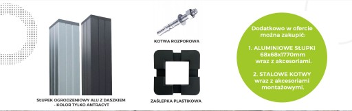 - SŁUPKI ALUMINIOWE 1852mm do montażu na podstawie słupka.