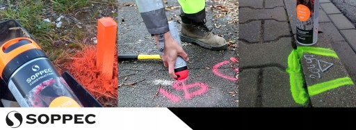 - Farba fluorescencyjna w sprayu marki Soppec o trwałości aż do 12 miesięcy.