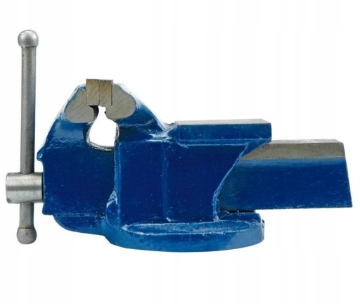 Imadło ślusarskie 100 mm Mocowane trwale do blatu. Wykonane z żeliwa. Śruba pociągowa ze specjalnym gwintem, szczęki stalowe utwardzane. Powierzchnia imadła lakierowana. Pozwala na mocowanie materiału przy wierceniu, cięciu, szlifowaniu itp. Niezbędne w każdym warsztacie.